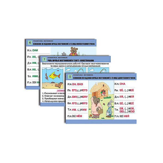 Описание Комплект таблиц для нач. шк. "Русский язык. Местоимение" (8 табл, формат А1, лам.)