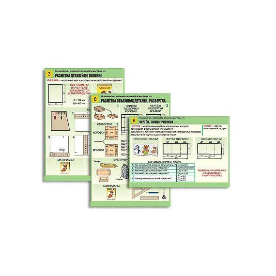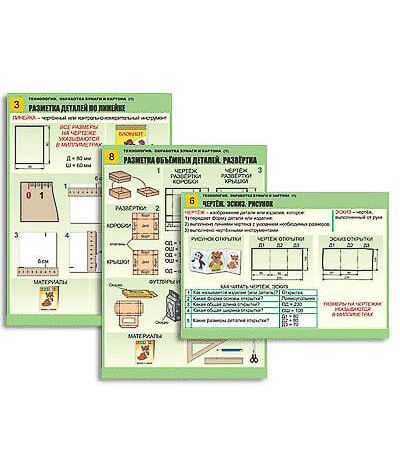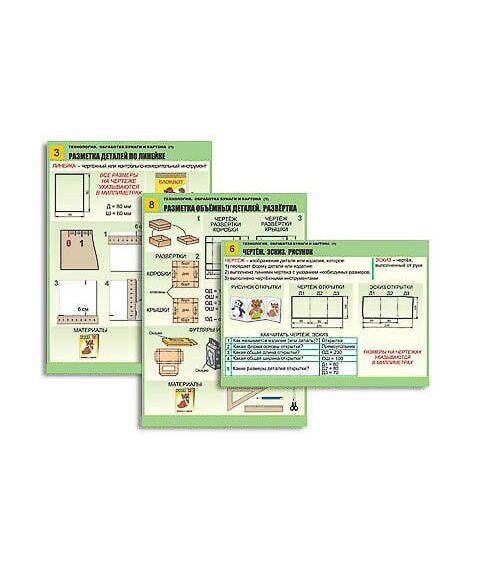Описание Комплект таблиц для нач. шк. "Технология. Обработка бумаги и картона-1" (8 таб, А1, лам,с разд.мат.)