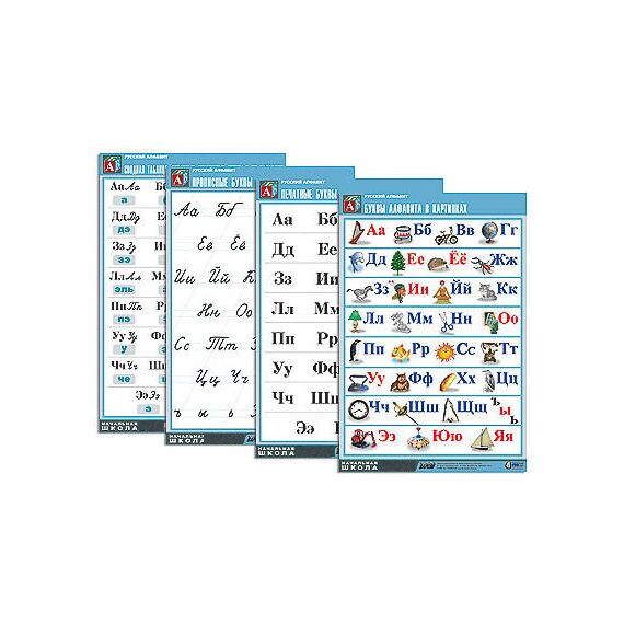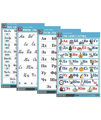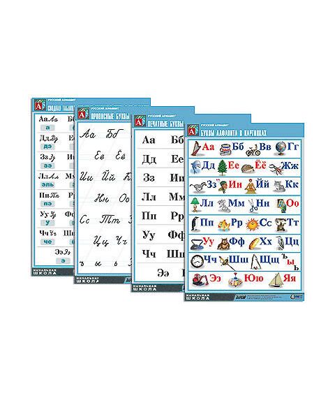Комплект таблиц "Русский алфавит" (4 табл., формат А1, матовое ламинир.)