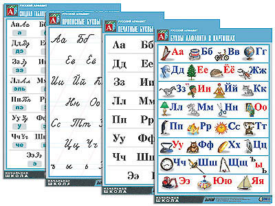 Комплект таблиц "Русский алфавит" (4 табл., формат А1, матовое ламинир.)