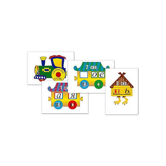 Пособие состоит из 4 полноцветных таблиц формата 27*39 см, ламинированных матовой пленкой. Таблицы посвящены трем склонениям имен существительных, изобразительно объединены темой паровоза и путешествия, что отражается и становится понятным в ходе урока.
