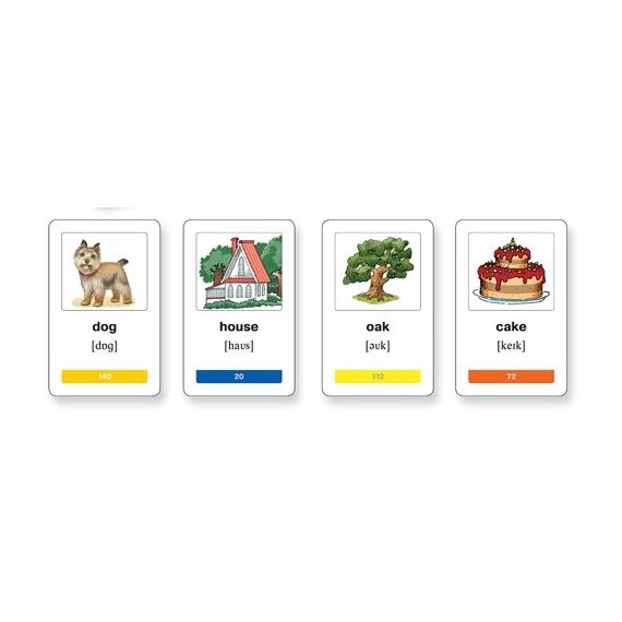 Материал специальным образом сгруппирован по темам, улучшающим запоминание и обеспечивающим возможность подбора карточек к теме урока: