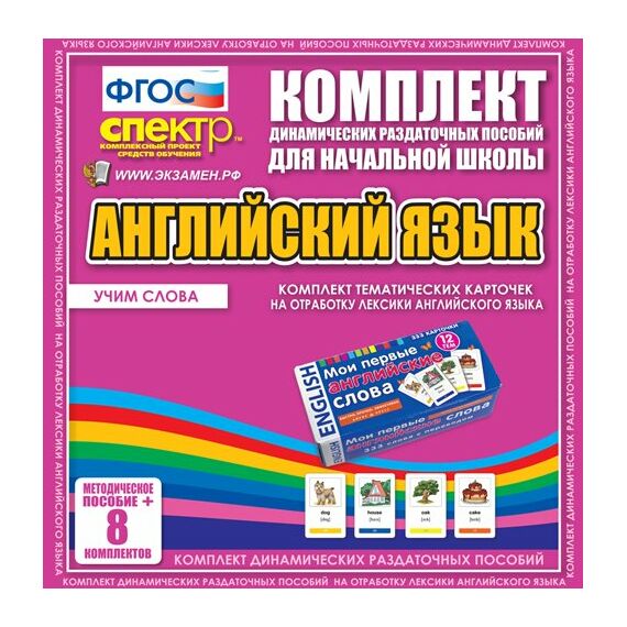 Комплект тематических карточек на отработку лексики английского языка. 8 наборов по 333 карточек.