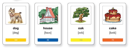 Материал специальным образом сгруппирован по темам, улучшающим запоминание и обеспечивающим возможность подбора карточек к теме урока: