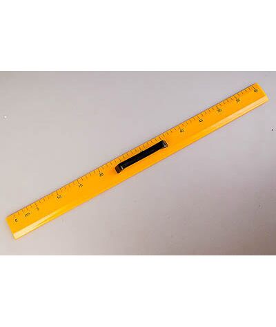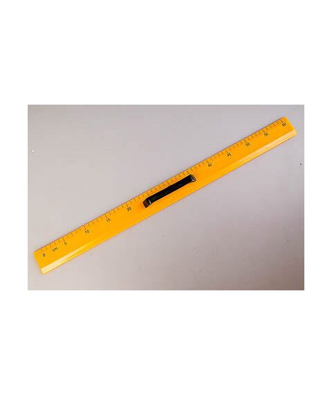 Линейка длиной 60 см со скошенными краями. На линейку нанесена шкала с ценой деления 1 см и оцифровкой через 5 см.