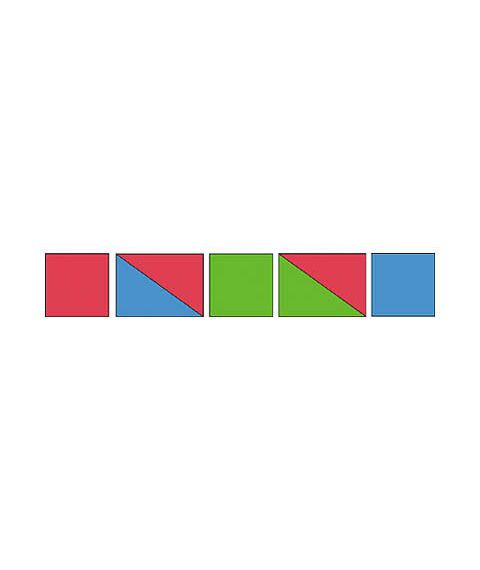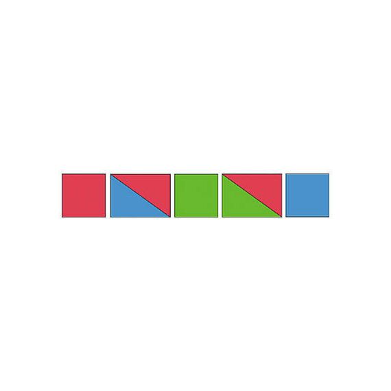 Квадратные карточки обозначают отдельную букву, а прямоугольные – слог. Для обозначения звуков использовано традиционное цветовое кодирование (гласный звук обозначается красным цветом, твердый согласный – синим, мягкий согласный – зеленым).