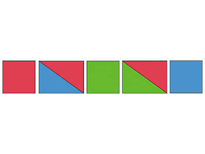 Квадратные карточки обозначают отдельную букву, а прямоугольные – слог. Для обозначения звуков использовано традиционное цветовое кодирование (гласный звук обозначается красным цветом, твердый согласный – синим, мягкий согласный – зеленым).