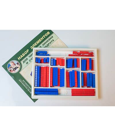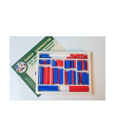 Изделие предназначено для использования в качестве раздаточного материала на уроках математики в начальной школе. Габаритные размеры в упаковке (дл.*шир.*выс.), см: 29*23*3. Вес, кг, не более 0,46. Набор состоит из счетных элементов красного и синего цвета, изготовленных из пластмассы. Число "1" обозначено кубиком 1*1*1 см, "2" – элементом размером 2*1*1 см, и так далее. На элементах нанесены сантиметровые деления. Общее количество элементов - 110. Изделие сопровождается руководством по эксплуатации. Упаковано в закрывающийся крышкой блистер с десятью пронумерованными ячейками, соответствующими размеру счетных элементов.