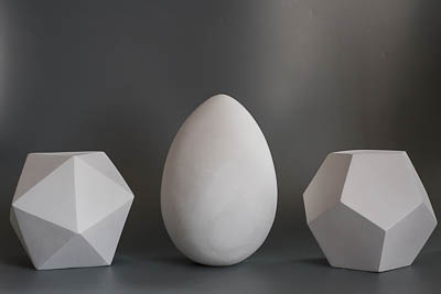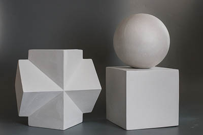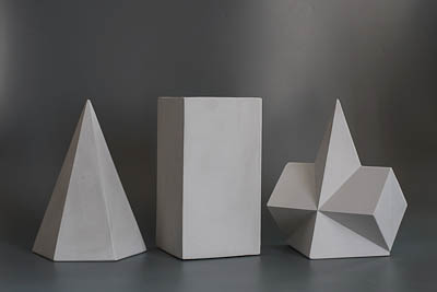 Геометрические тела изготовлены из гипса, дополнительно не окрашены.