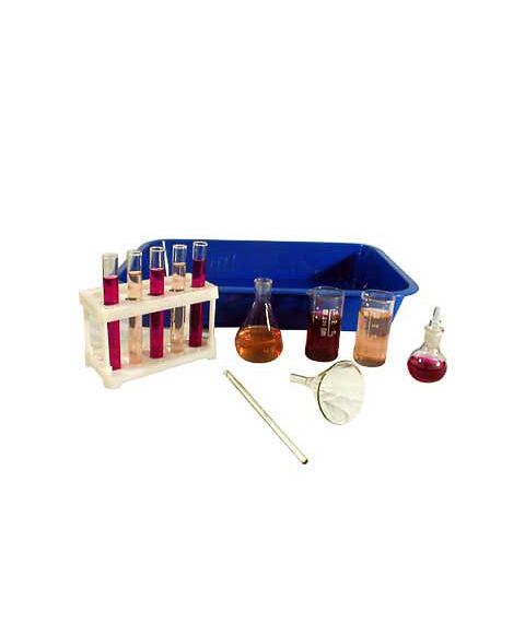 Комплектность: пробирка 14*120 - 5 шт., стакан с меткой 50 мл - 2 шт., штатив для пробирок на 10 гнезд - 1 шт., колба коническая 50 мл - 1 шт., воронка 56-80 - 1 шт., стеклянные палочки - 1 шт., капельница - 1 шт., лоток для раздаточного материала - 1 шт.