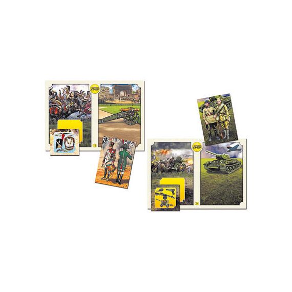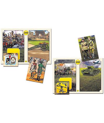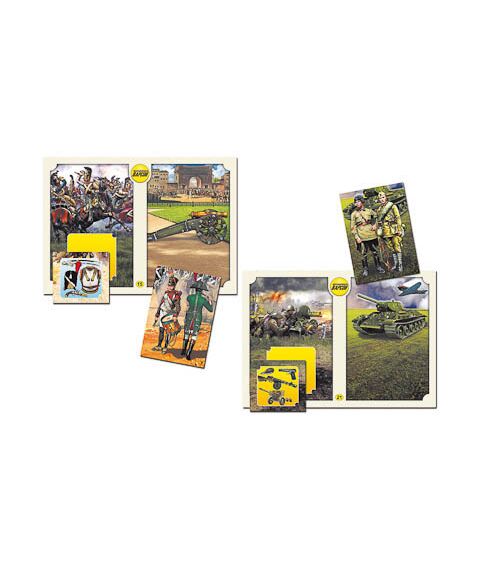 Игра состоит из 24 полноцветных игровых полей формата А5, 24 квадратных и 24 прямоугольных полноцветных карточек. Карточки и игровые поля изготовлены из картона и ламинированы пленкой. Изображения на игровых полях иллюстрируют определенные события или периоды в истории России. На карточках для правой части игрового поля (прямоугольных) даны изображения воинов, принимавших участие в сражениях данного периода. Карточки служат продолжением изображений на игровых полях и содержат общие с ними детали фона. На карточках для левой части игрового поля (квадратных) дана врезка, на которой представлены вооружение и элементы экипировки соответствующего периода.