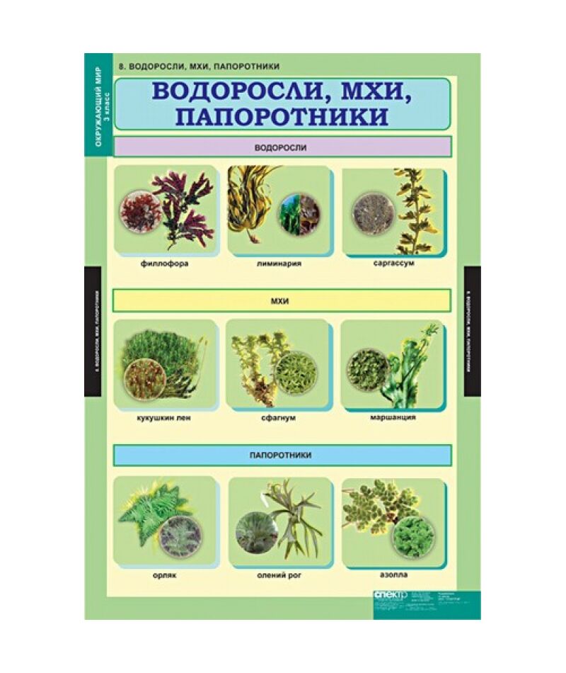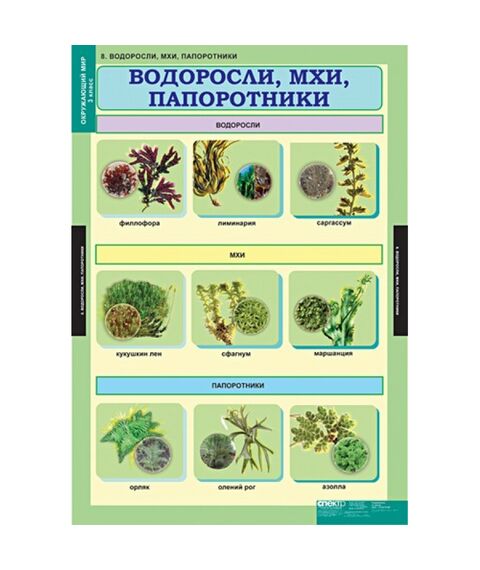 - Водоросли, мхи, папоротники.