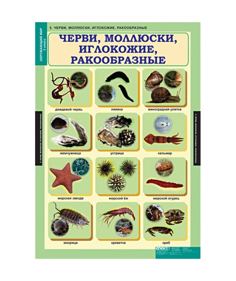 - Черви, молюски, иглокожие, ракообразные.