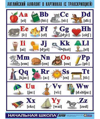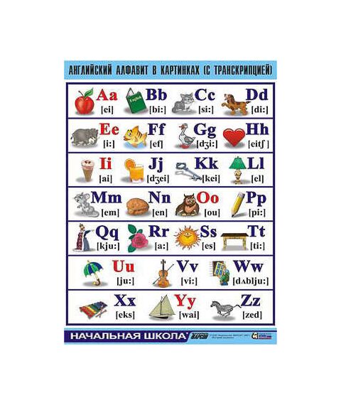 Описание Таблица демонстрационная "Английский алфавит в картинках" (с транскрипцией) (винил 100х140)