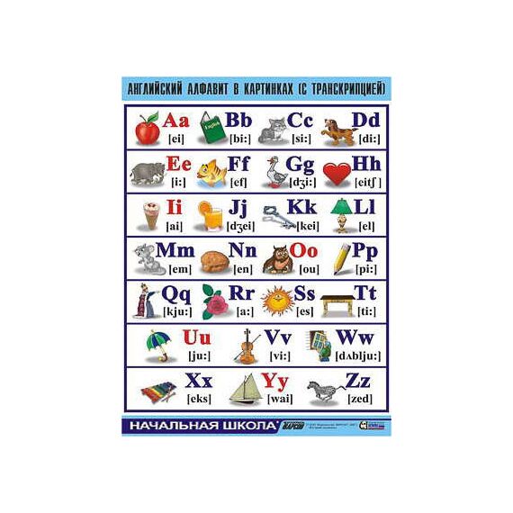 Наличие товара Таблица демонстрационная "Английский алфавит в картинках" (с транскрипцией) (винил 100х140)