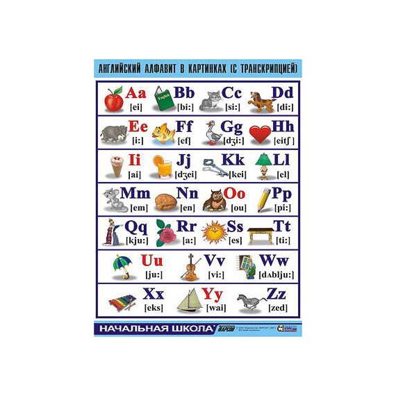 Таблица демонстрационная "Английский алфавит в картинках" (с транскрипцией) (винил 70х100)