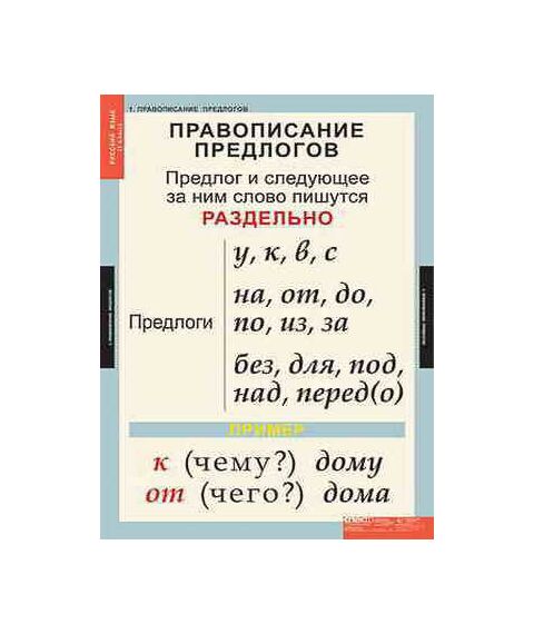 Учебный альбом из 10 листов (формат 68*98 см): 1. Правописание предлогов. 2. Гласные звуки и буквы. 3. Согласные звуки. 4. Правописание согласных в корне. 5. Правописание безударных гласных в корне. 6. Члены предложения. 7. Гласные после шипящих. 8. Сочетания букв. 9. Перенос слова 10. Правописание парных согласных звуков в конце слова.