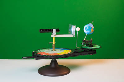 Модель позволяет демонстрировать взаимное расположение и относительное движение трех небесных тел: Солнца, Земли и Луны.