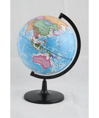 Предназначен для демонстрации при изучении курса географии. Представляет собой модель земного шара с политической картой. Глобус политический дает возможность продемонстрировать расположение на поверхности земного шара государств, наиболее крупных городов.