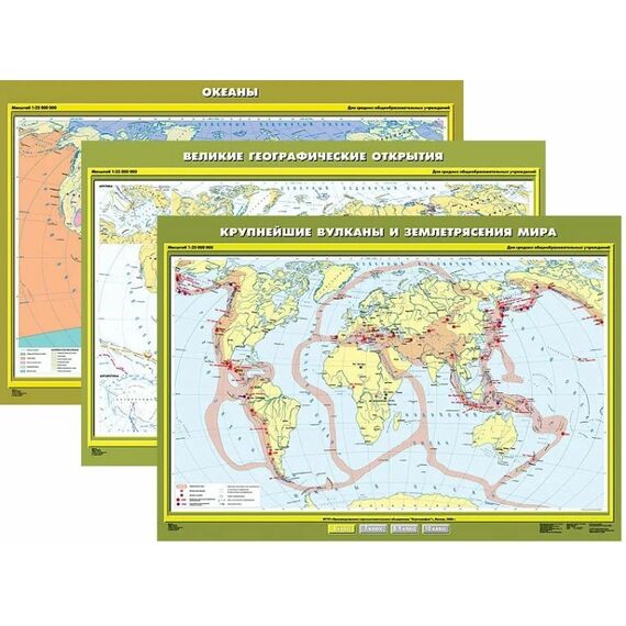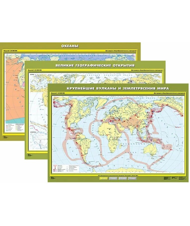 Комплект входит 12 карт по всему курсу географии для 5-6 класса: