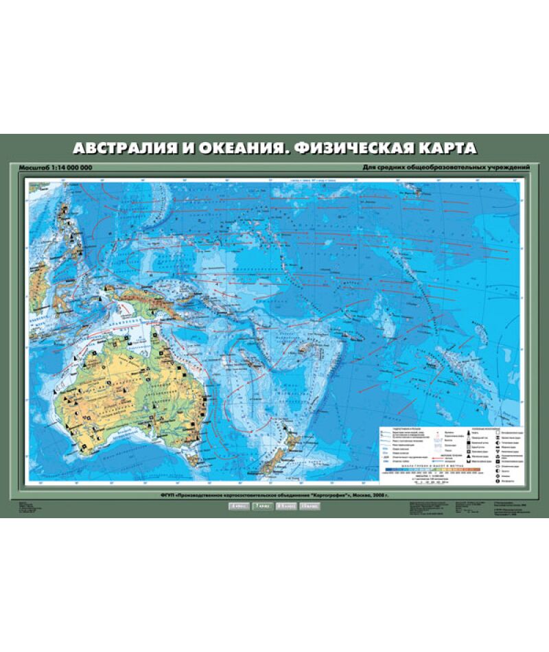 К-0718 Австралия и Океания. Физическая карта (70х100 см.)