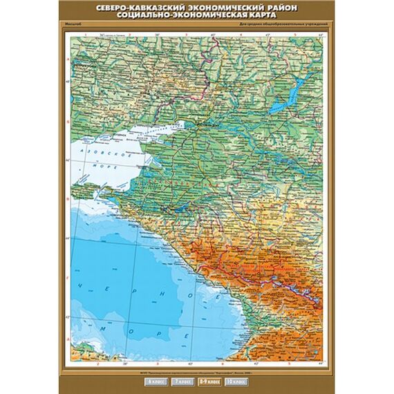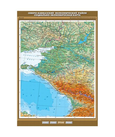 Карта настенная "Северо-Кавказский экономический район. Социально-экономическая карта" 100х140, артикул КР-0843