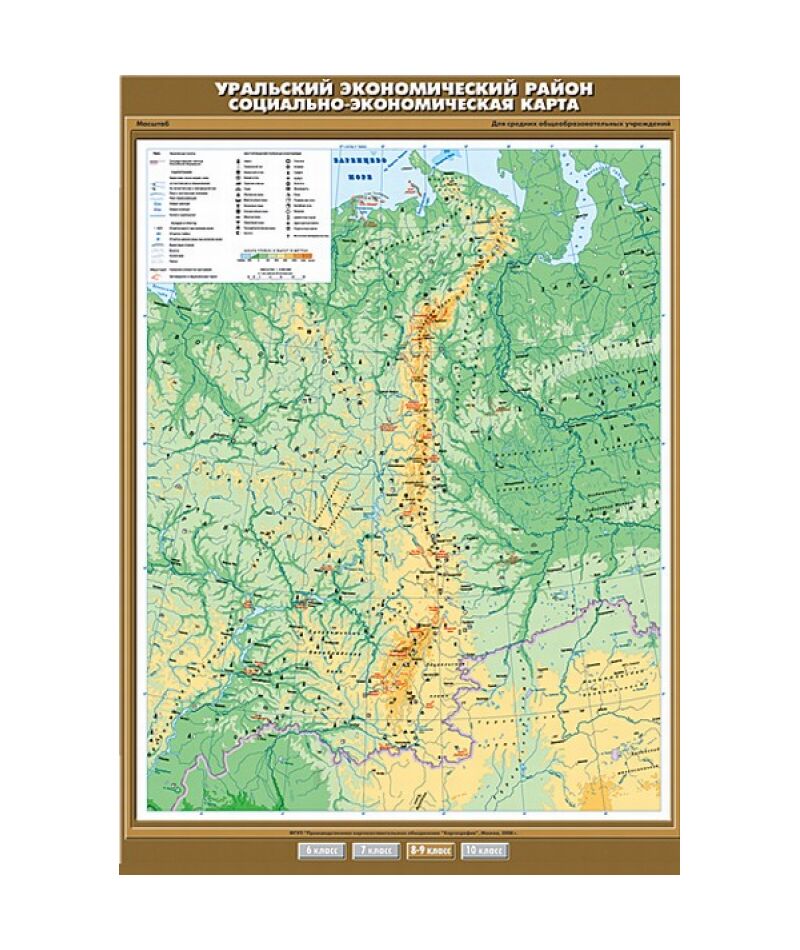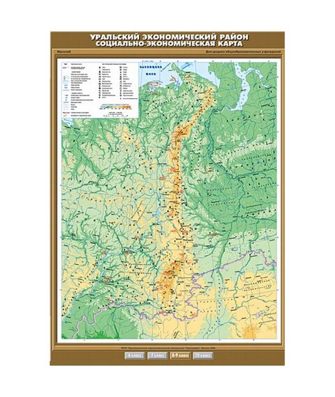 Карта настенная "Уральский экономический район. Социально-экономическая карта" 100х140, артикул К-0845