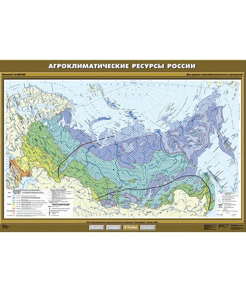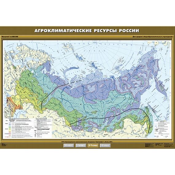 - Карта настенная "Агроклиматические ресурсы России" 100х140, артикул КР-0801