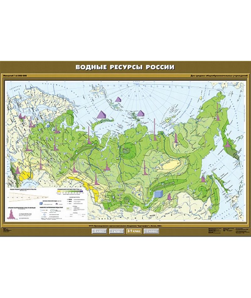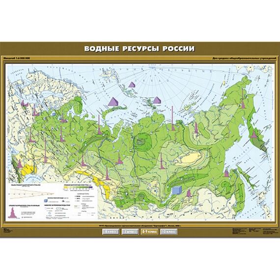 - Карта настенная "Водные ресурсы России" 100х140, артикул КР-0802