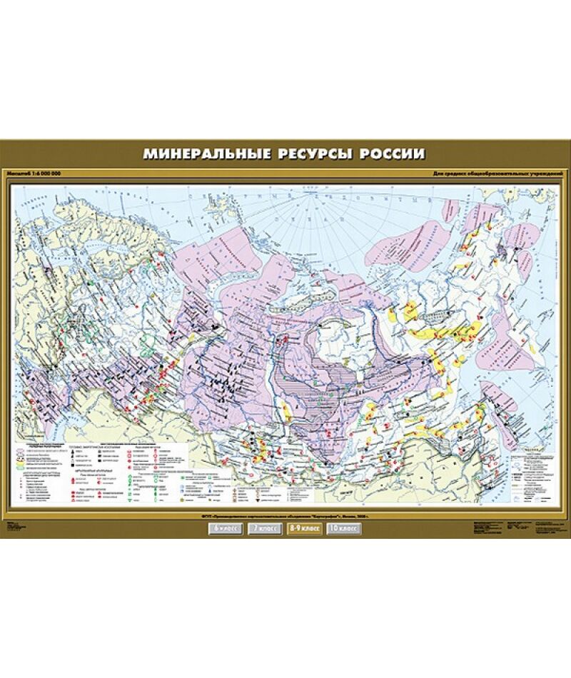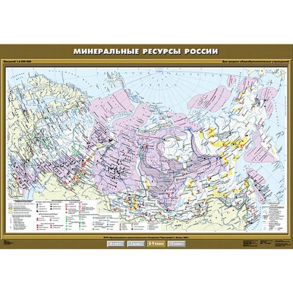 Карта настенная "Минеральные ресурсы России" 100х140, артикул КР-0808