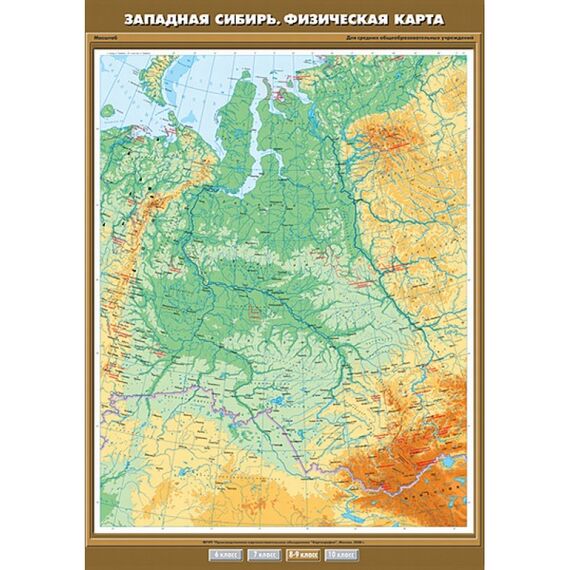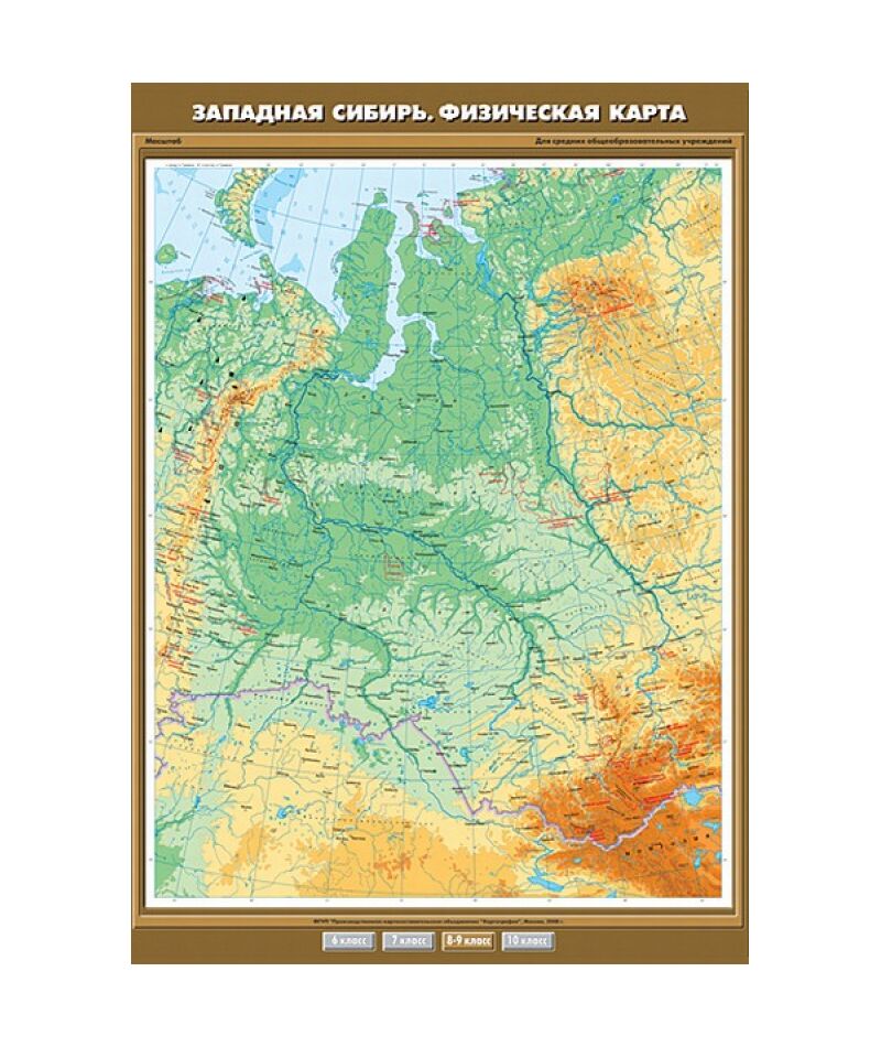 Карта настенная "Западная Сибирь. Физическая карта" 100х140, артикул К-0846