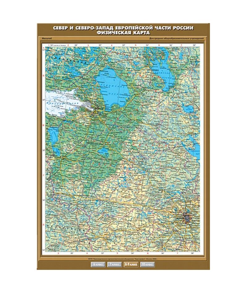 Карта настенная "Север и Северо-Запад Европейской части России. Физическая карта" 100х140, артикул К-0836