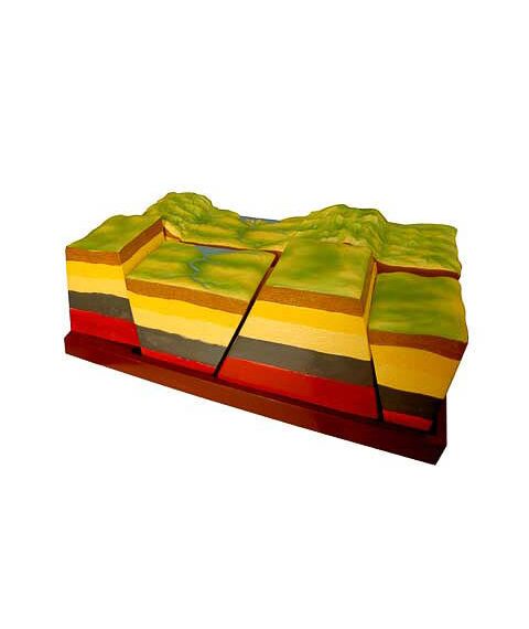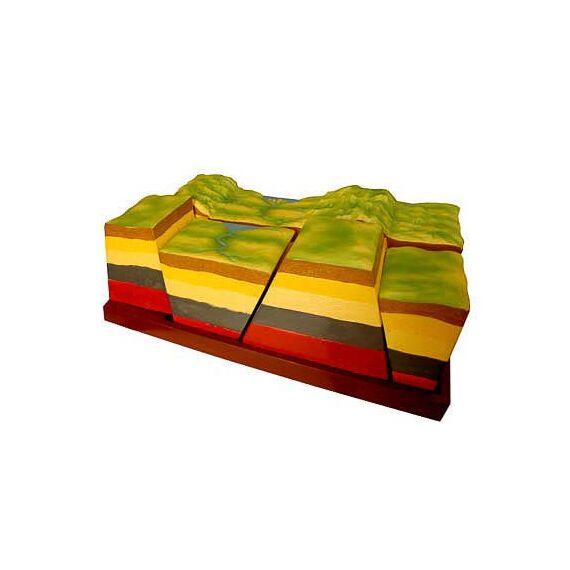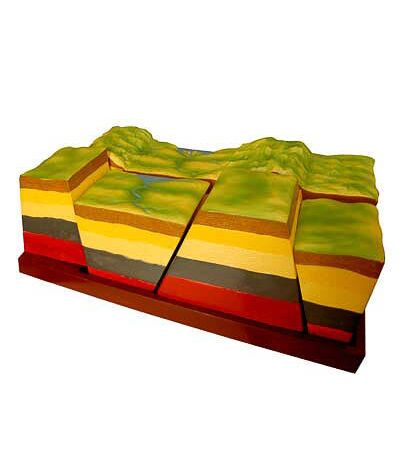 Представляет собой красочную разрезную модель участка земной коры, на которой виден сдвиг земных пород.