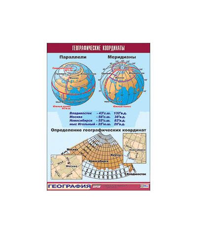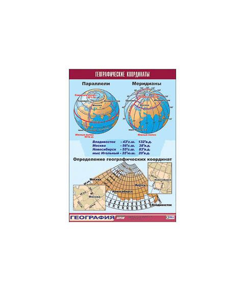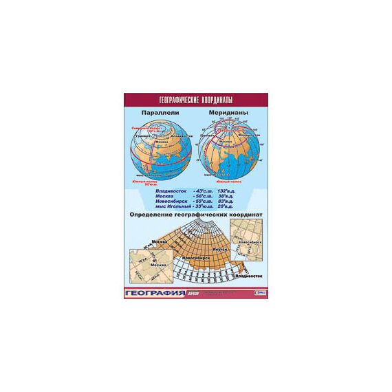 Описание Таблица демонстрационная "Географические координаты" (винил 100x140)