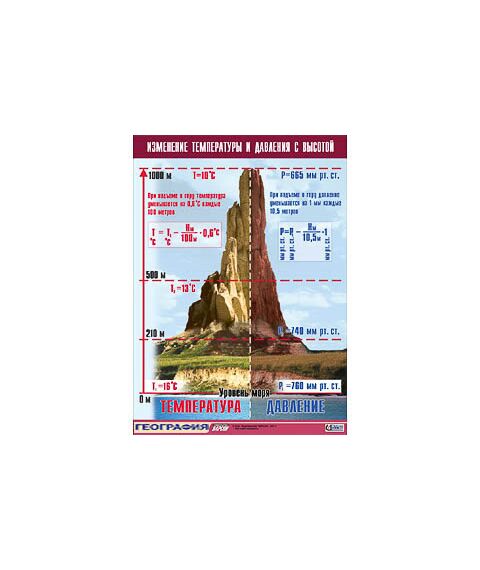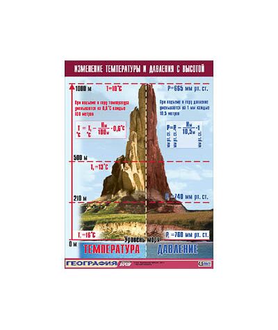 Описание Таблица демонстрационная "Изменение температуры и давления с высотой" (винил 100х140)