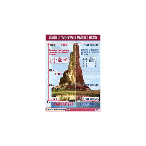 Наличие товара Таблица демонстрационная "Изменение температуры и давления с высотой" (винил 100х140)