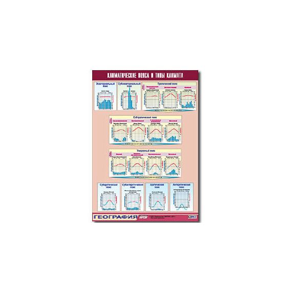 Наличие товара Таблица демонстрационная "Климатические пояса и типы климата" (винил 100х140)