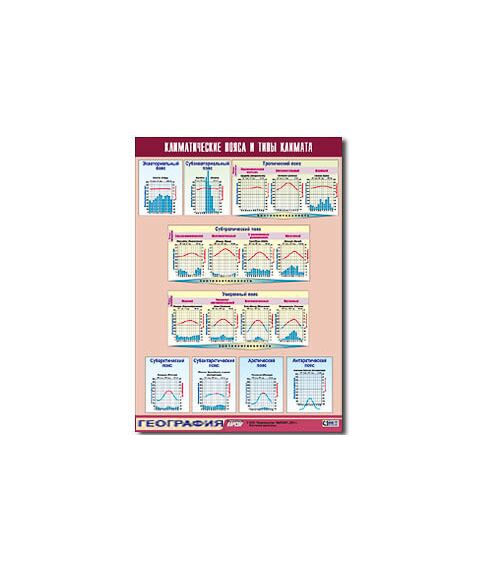Наличие товара Таблица демонстрационная "Климатические пояса и типы климата" (винил 70х100)