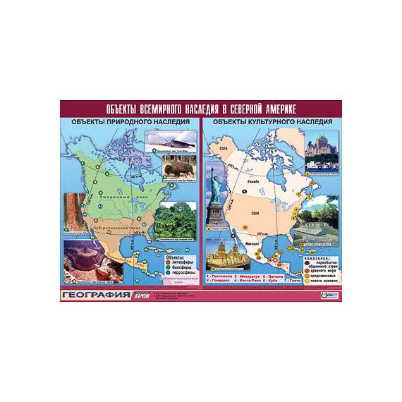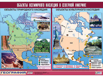 Наличие товара Таблица демонстрационная "Объекты всемирного наследия в Северной Америке" (винил 100х140)