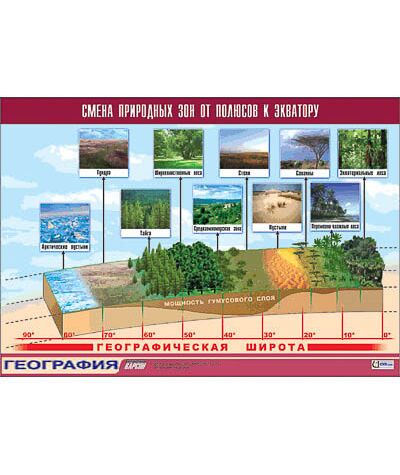 Таблица демонстрационная "Смена природных зон от полюсов к экватору" (винил 70x100)