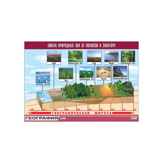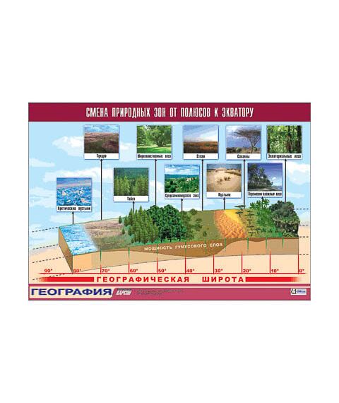 Наличие товара Таблица демонстрационная "Смена природных зон от полюсов к экватору" (винил 70x100)