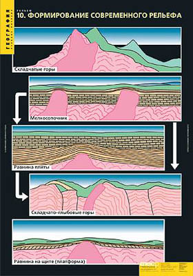 Восточно-Европейская равнина. Западно-Сибирская равнина. Средне-Сибирское плоскогорье. Северо-восток Сибири. Уральские горы. Кавказ. Горы южной Сибири. Дальний Восток. Рельеф дна океана. Формирование современного рельефа.