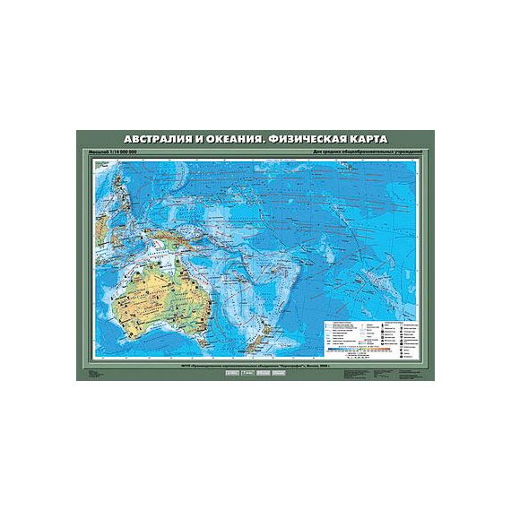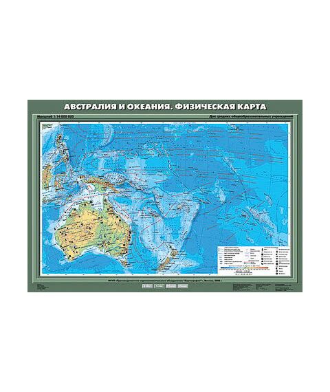Описание Учебн. карта "Австралия и Океания. Физическая карта" 70х100