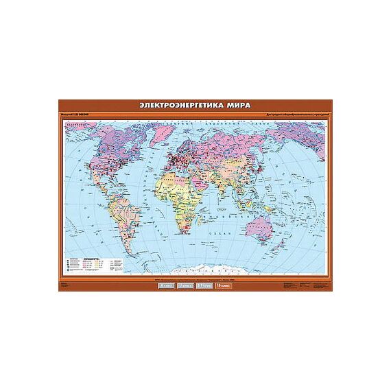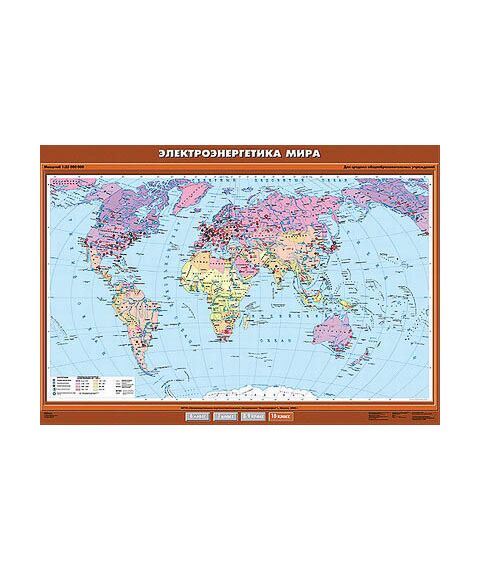 Описание Учебн. карта "Электроэнергетика мира" 100х140