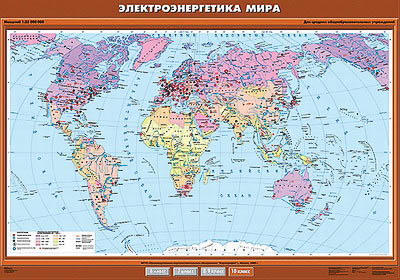 Описание Учебн. карта "Электроэнергетика мира" 100х140