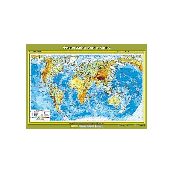 Описание Учебн. карта "Физическая карта мира" 100х140