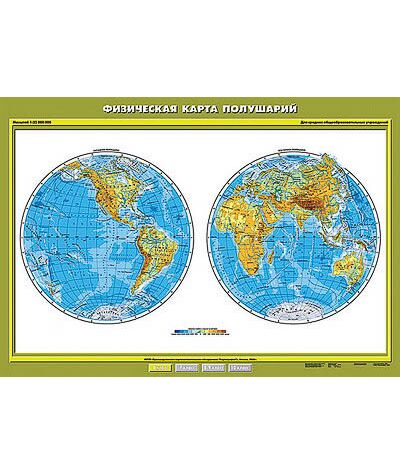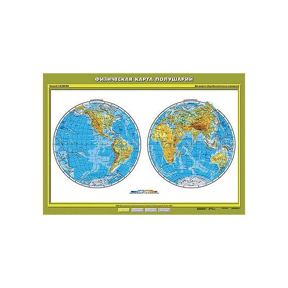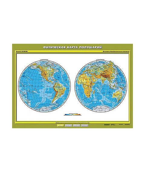 Описание Учебн. карта "Физическая карта полушарий" 100х140