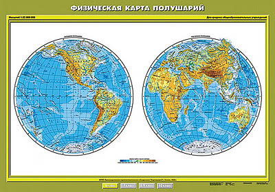 Описание Учебн. карта "Физическая карта полушарий" 100х140