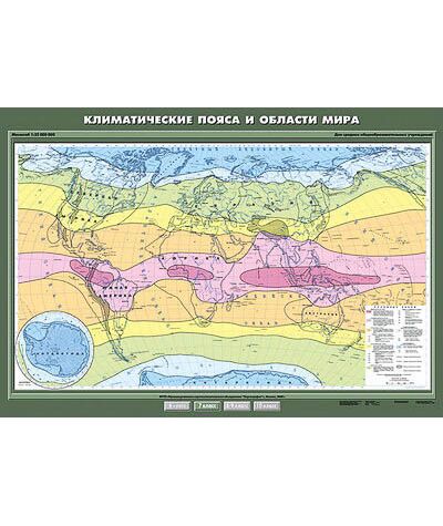 Наличие товара Учебн. карта "Климатические пояса и области мира" 100х140