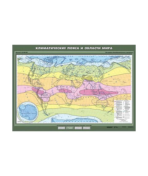 Описание Учебн. карта "Климатические пояса и области мира" 100х140